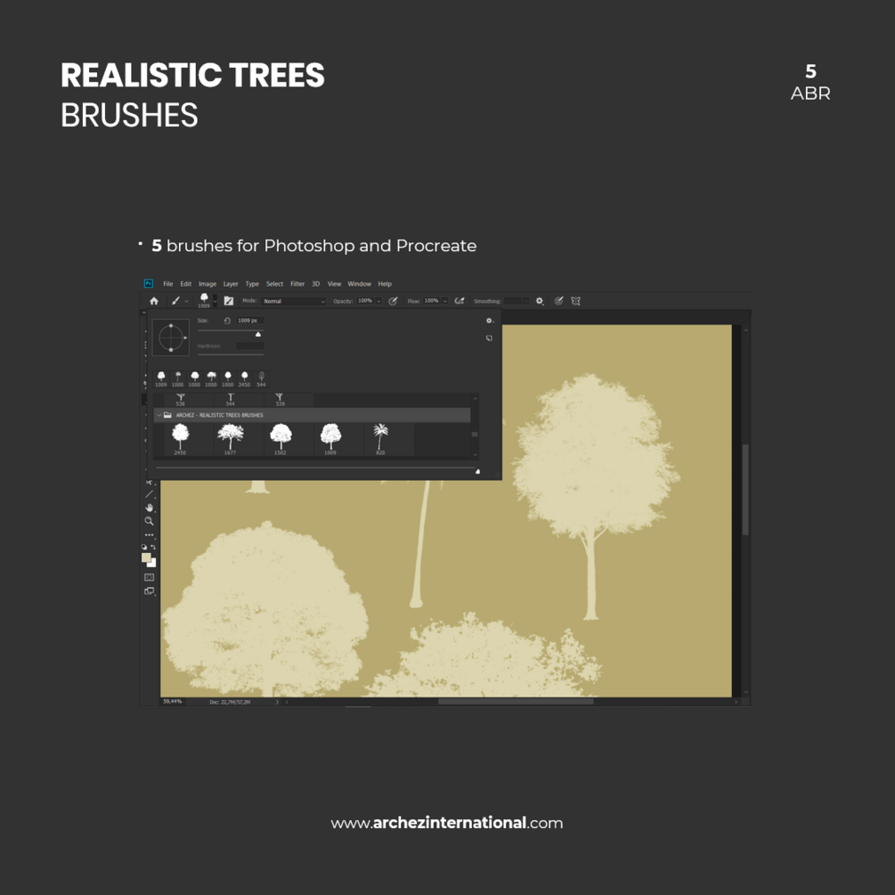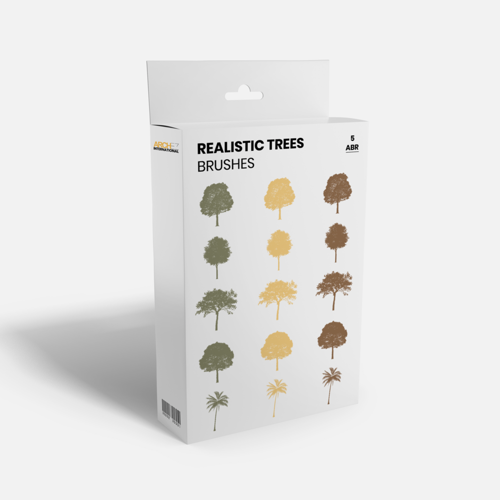 Description: Transform your architectural illustrations with our collection of 5 tree brushes, designed specifically for you to personalize each detail and add unique value to all your post-productions and architectural illustrations.